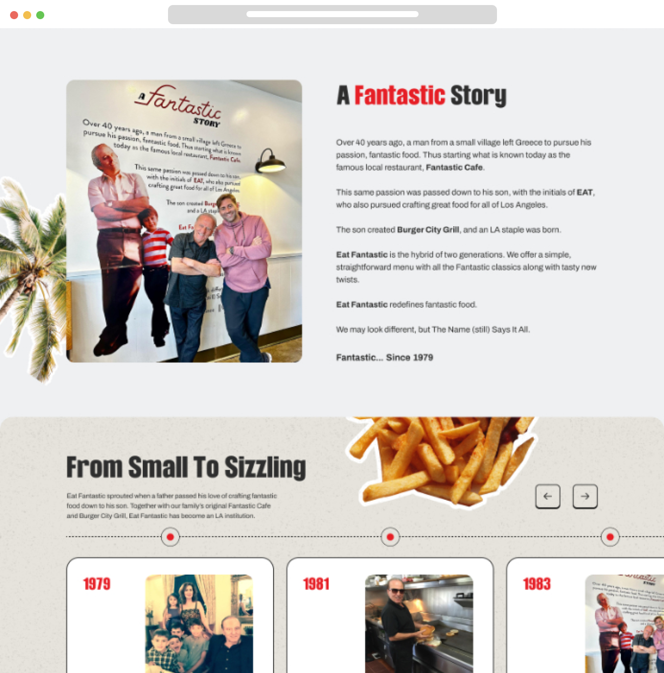 To highlight the LA connection, the redesign incorporated local imagery and narratives that celebrated the city’s culture. The story of Eat Fantastic’s owners and the brand’s journey was prominently featured, connecting with customers on a personal level.